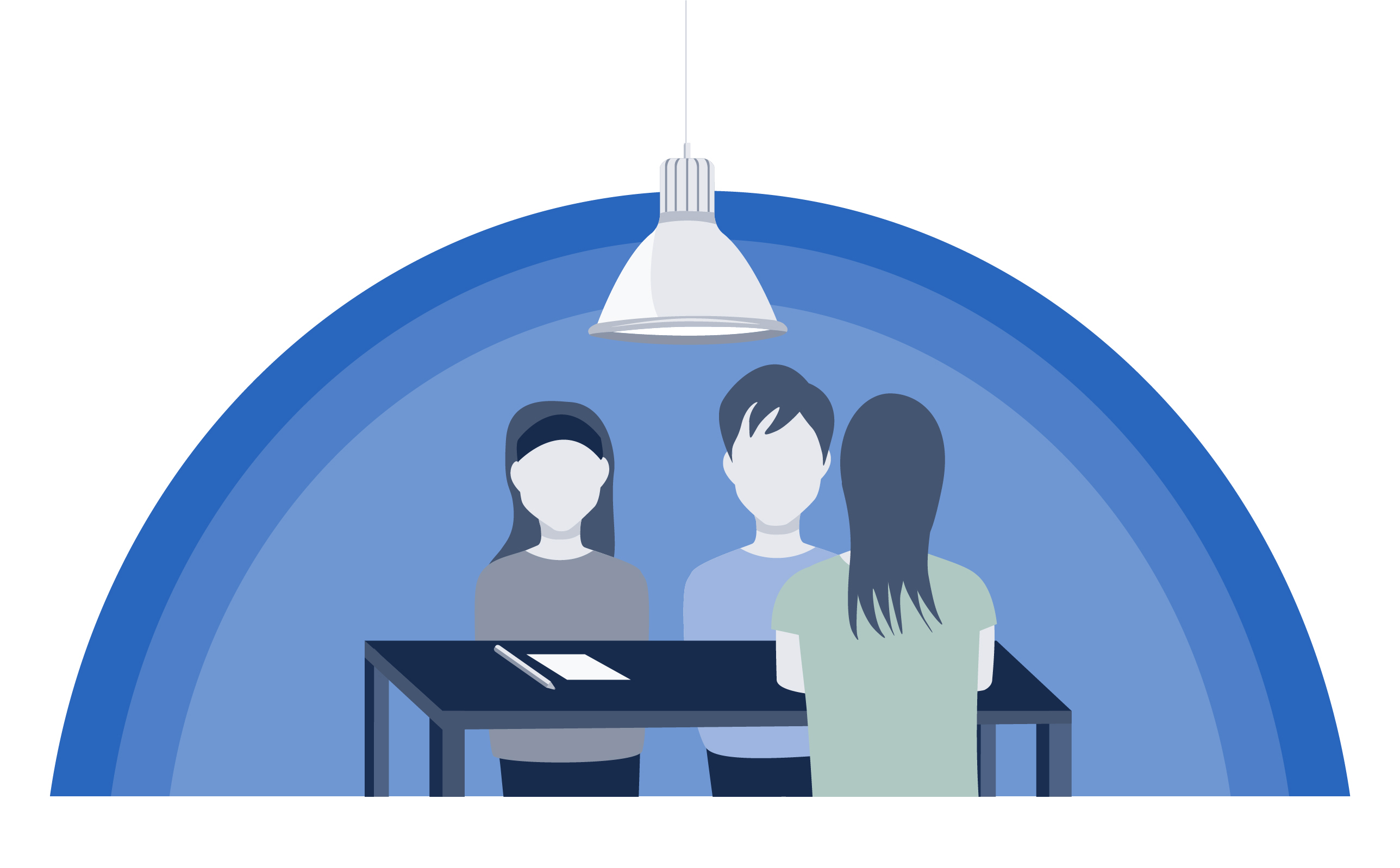 Research has also been conducted at a primary school in Aarhus, Denmark into design measures to reduce noise levels. This demonstrated that focused areas of light, with clear differences in light levels (tables with pendent lamps suspended above them) reduced noise levels and made students feel that they could focus better on their lessons .