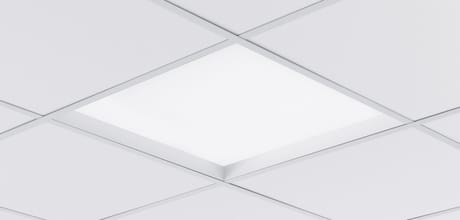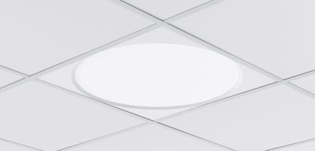 I storkontor och öppna arbetsytor är infällda LED-plattor i taket en populär lösning. Tyvärr saknas uppljuset i en sådan armatur, vilket kan göra att kontrasten till takytan runtom blir mörk. Det finns då risk för att LED-plattorna längre fram i lokalen upplevs som bländade för de som arbetar i kontoret.