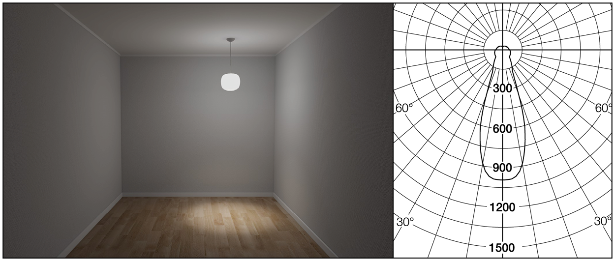 Takkopp av vit eller svart ABS-plast. Armaturfattning i vitt (RAL 9016 G7) eller svart (RAL 9005 G7). Elliptisk kupa av blankt opalglas med öppning i nederkant. Levereras med textilledning, Ø 250-300 mm: 2,0 m.