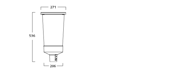 Stolpfäste, kylkropp och lock av gjuten aluminium. Kupa av slagtålig UV-stabiliserad polykarbonat. Driftdon är inbyggt i armaturen.