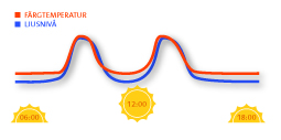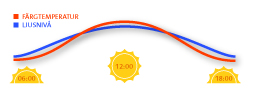 Idealet är helt enkelt att imitera det naturliga ljuset, både i nivå och färg under dagen. Kallt, intensivt ljus med hög andel blått verkar aktiverande, varmt dimmat ljus är avslappnande.