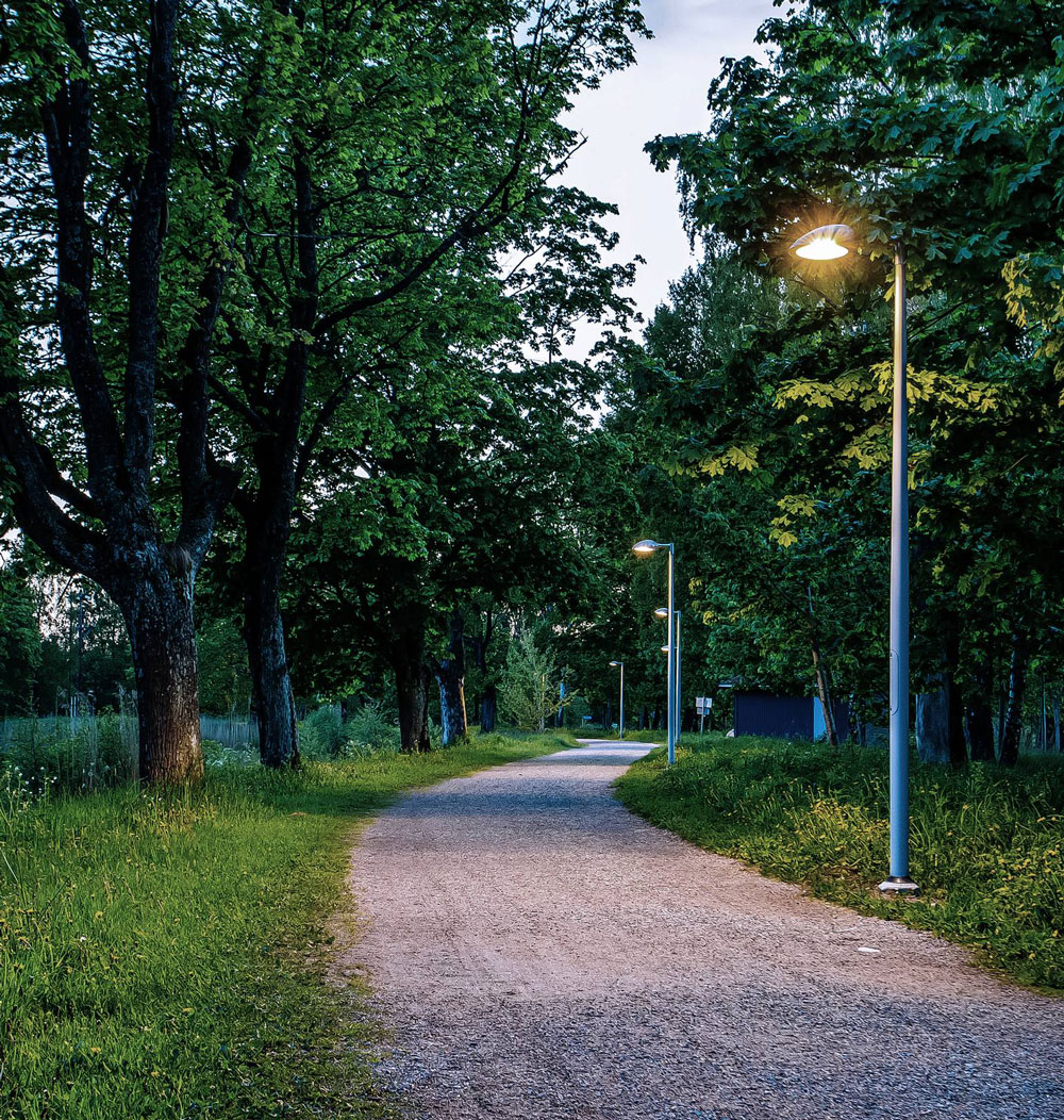 Med parkbelysning kan man skapa en behaglig och säker miljö där människor vill vistas även när solen har gått ner. Själva belysningen och armaturerna är en integrerad del av landskapets arkitektur som bidrar till dess form och karaktär.