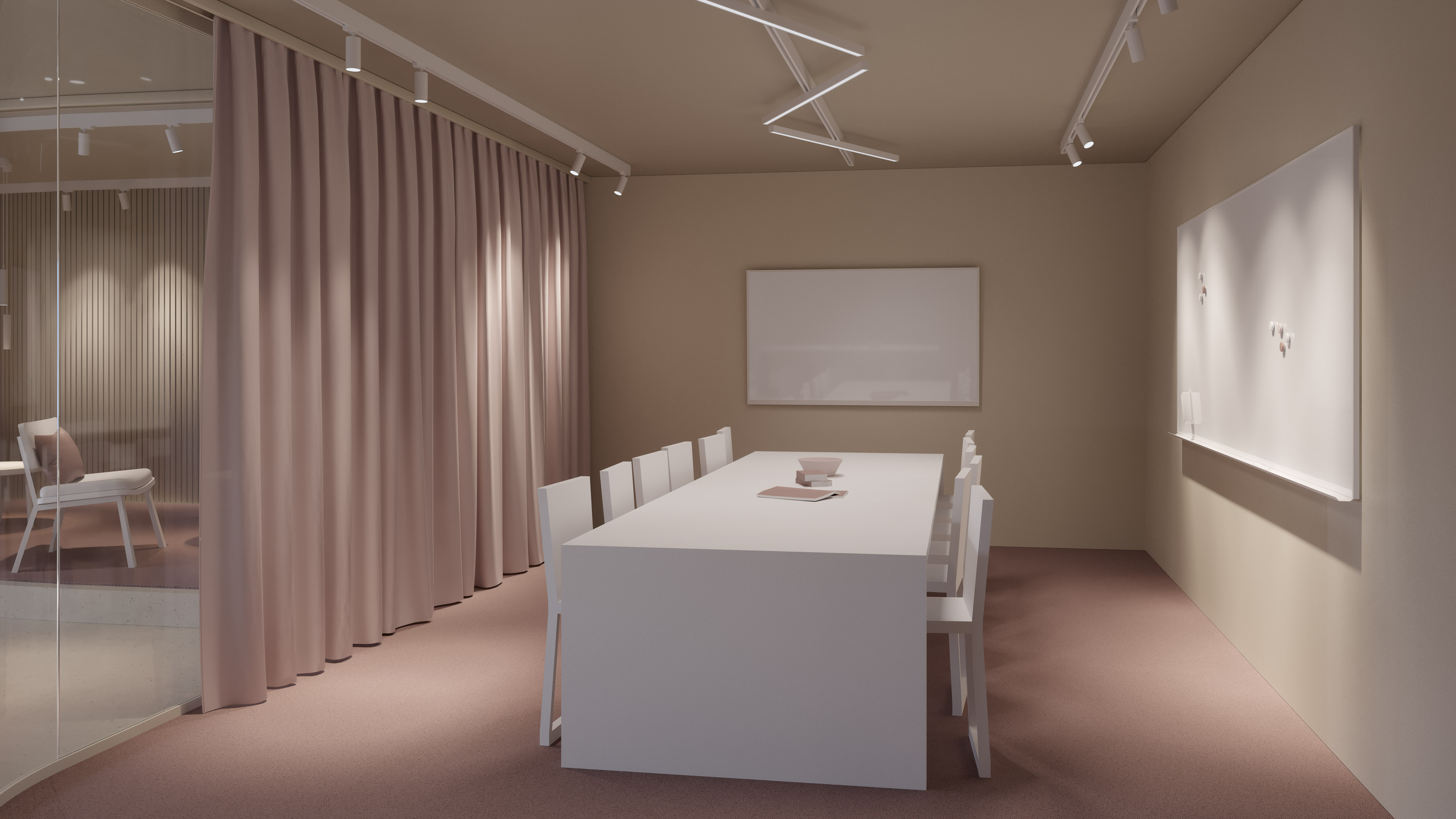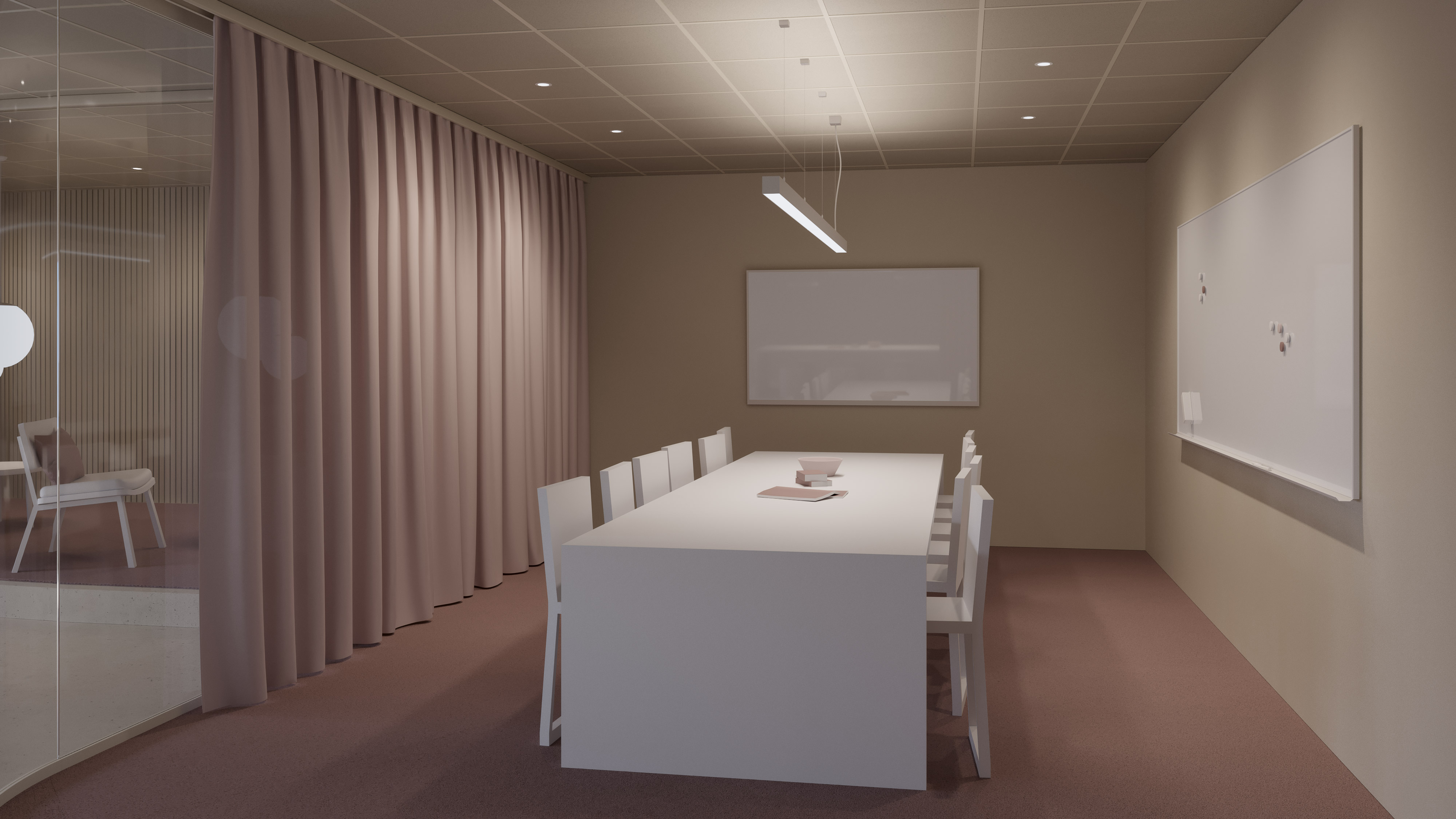 Mötesrummet ska kunna vara en inspirerande och kreativ plats, där flera moment ska kunna genomföras – presentationer, samtal eller workshops. En anpassningsbar belysning underlättar för de anställda att få ut det mesta av sitt möte.