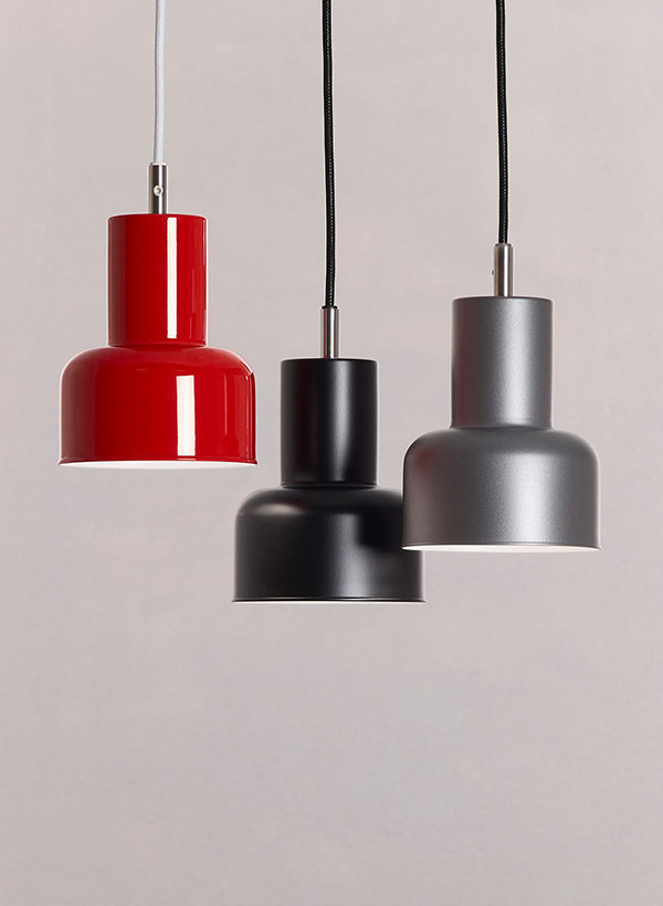 Fabian was taken out of production in the middle of the nineties and the arena has changed from domestic lighting to public lighting for Fabian’s second incarnation. It has also been the subject of a slight face lift and is now produced as a pendant; the proportions are a little bigger and the plastic housing has been replaced by sheet metal or opaque glass. The opaque shade has a contemporary twist sympathetic to the most varied of interiors. And there’s still one Fabian for every room. Let it add some extra sparkle over café tables, desks and counters, in windows, bars and hotels.
